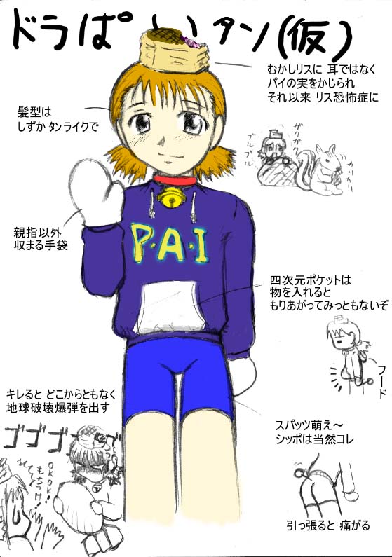 ,彡ノフハヾ ●特徴:頭にパイの実を乗せている